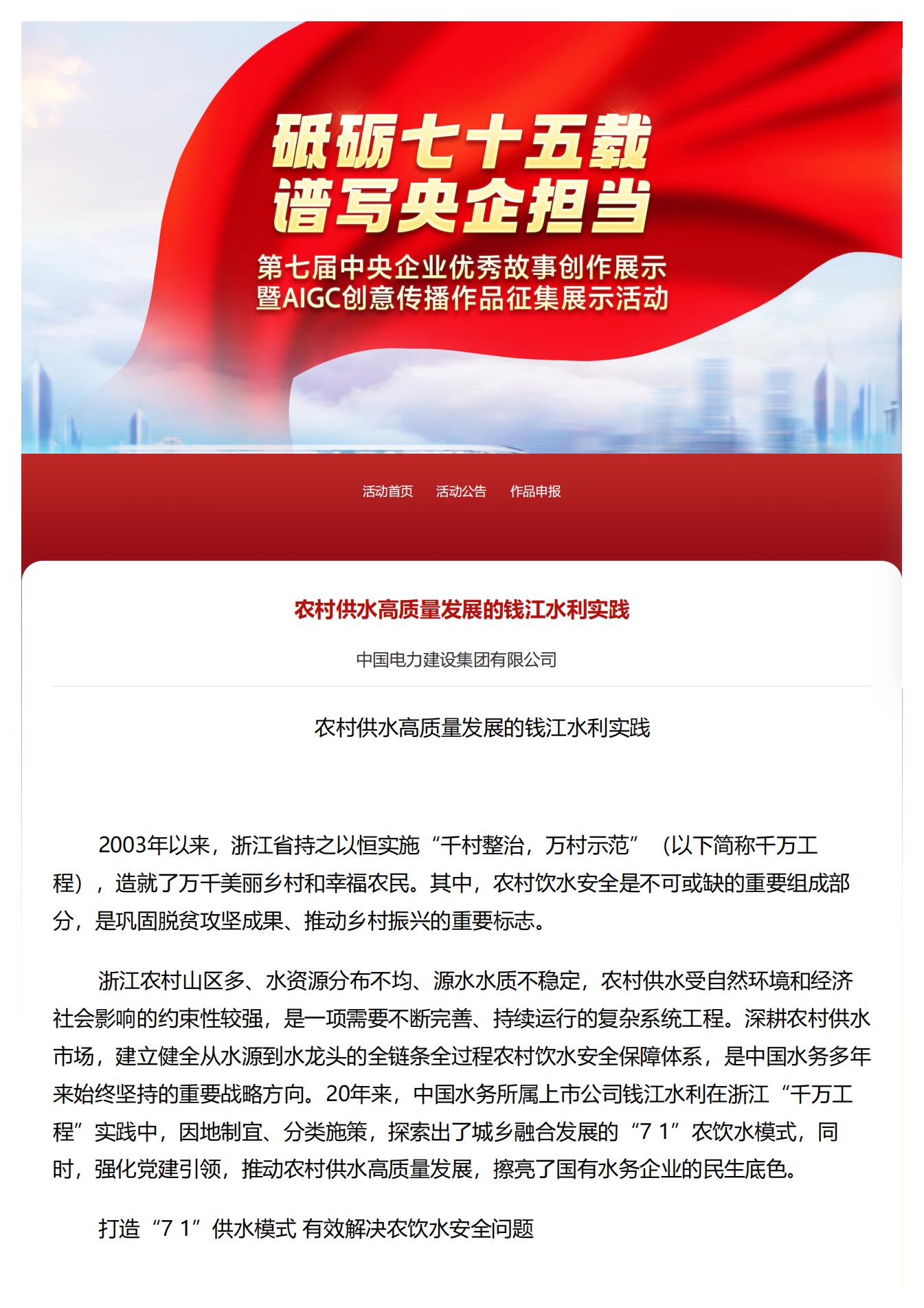 近日,電建集團公布2024年度中國電建群眾性創新創效活動優秀成果獲獎名單,錢江水利開發股份有限公司申報的《舟山市定海水廠…